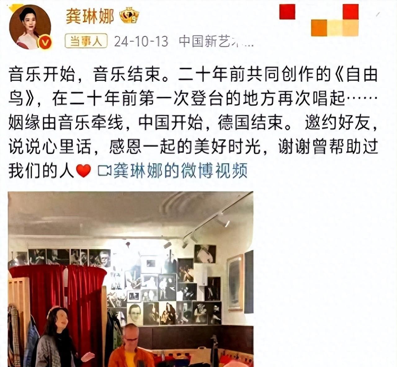 谁能念念到,2024年10月,龚琳娜发视频和老锣一合唱《解放鸟》,然后安谧文告仳离。